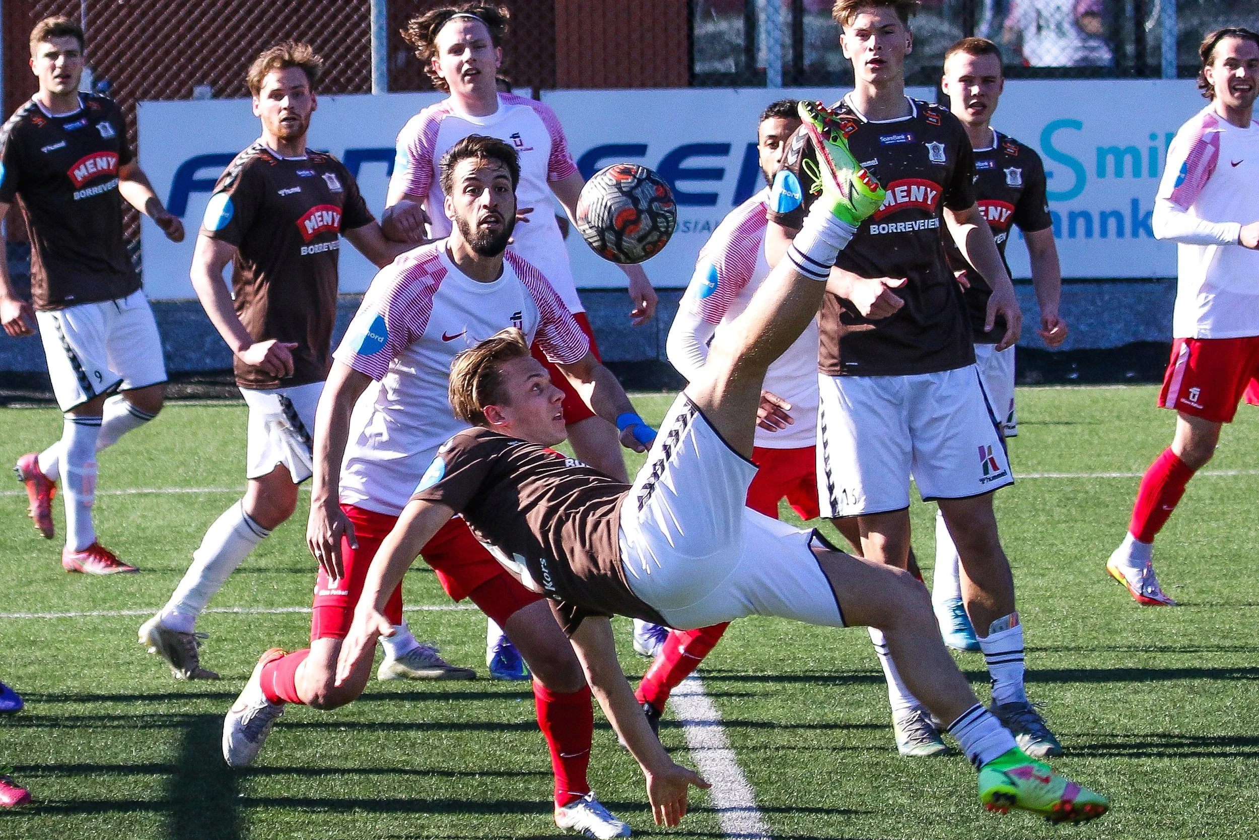 (Bildet: Fra kampen mot Ullern. Gustav Sving Helling er i gang med et skikkelig brassespark. Videre er Henrik Falchnernærmest. Christian Foss Hargott bak der igjen til høyre. Fredrik Tørnby til venstre og Adrian Rogulj helt til venstre. Foto: Knut G. Bjerva)