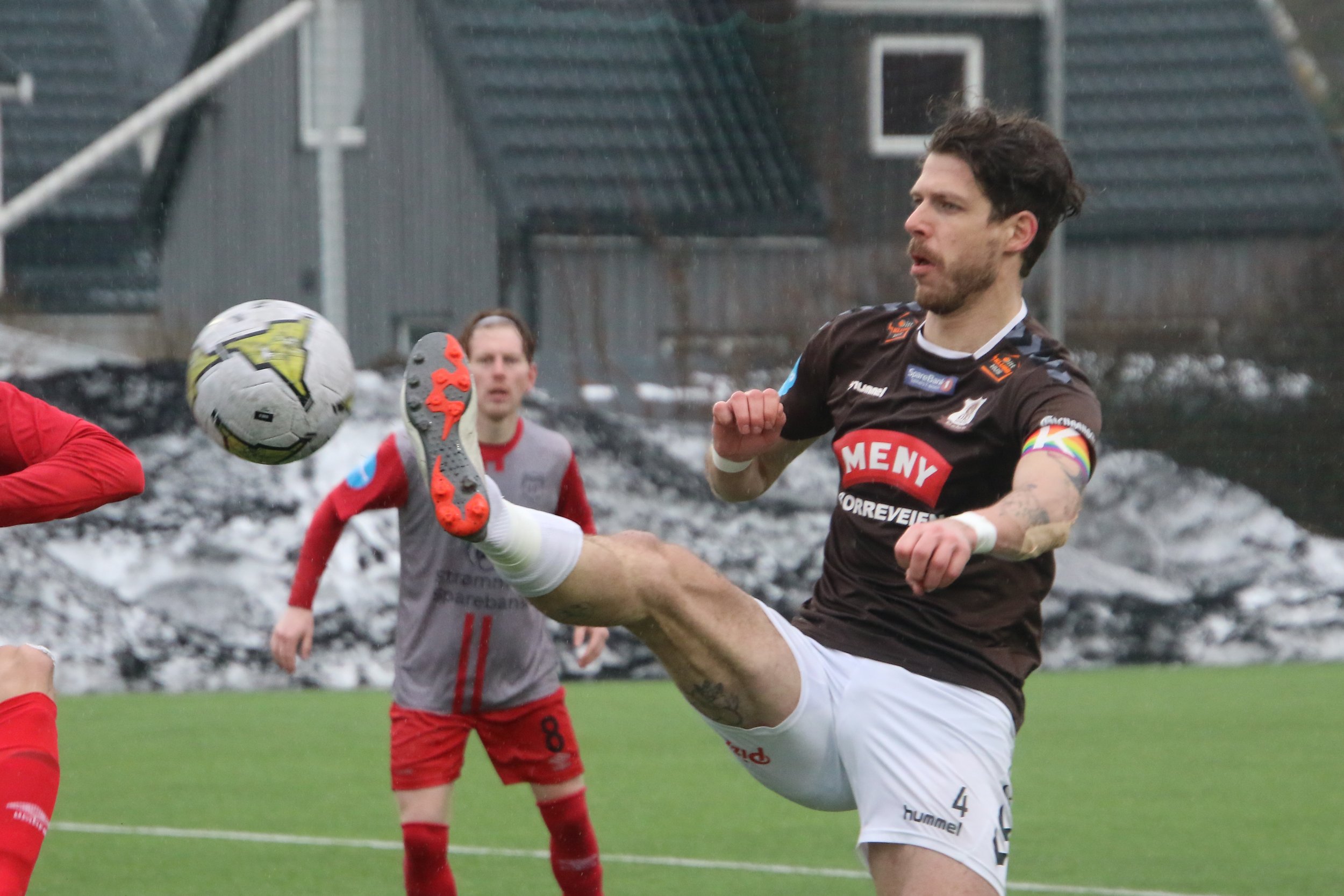 Ikke lenge etter ga Sebastian Pop Ørn ledelsen gjennom en sold heading etter en corner. Strømmen fikk mulighet til å utligne like før pause på et billig mål.