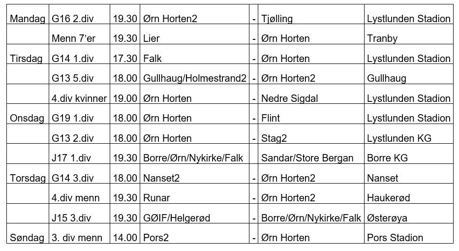 Også denne uka har du mulighet til å få med deg mange Ørn-kamper, både i Lystlunden og på bortebane.