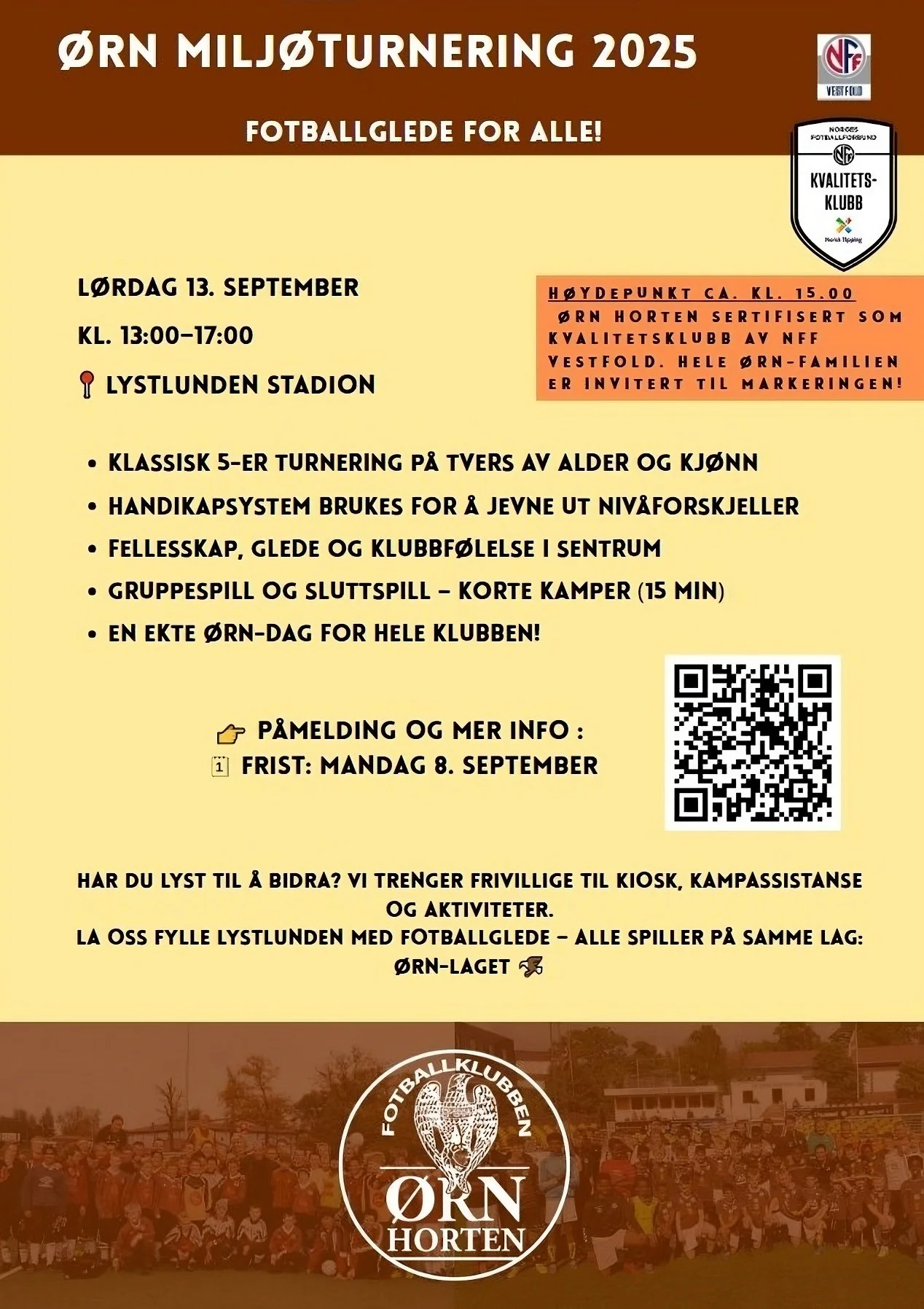 Høydepunkt: Kl. 15.00 blir Ørn Horten offisielt sertifisert som Kvalitetsklubb av NFF Vestfold – en milepæl i klubbens historie!