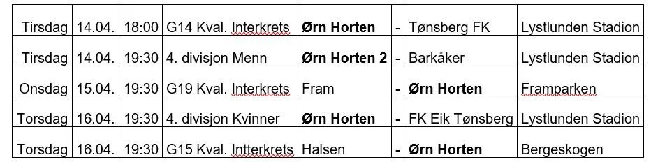 Selv om det ikke er full rulle for fotballen, er det denne uka flere seriekamper med Ørn-lag involvert. Og flere muligheter til å få maed seg kamper på Stadion. Tirsdag er det to påfølgende kamper, først Gutter14 i Interkrets-kvalifisering, før laget i 4. divisjon møter nyopprykkede Barkåker.