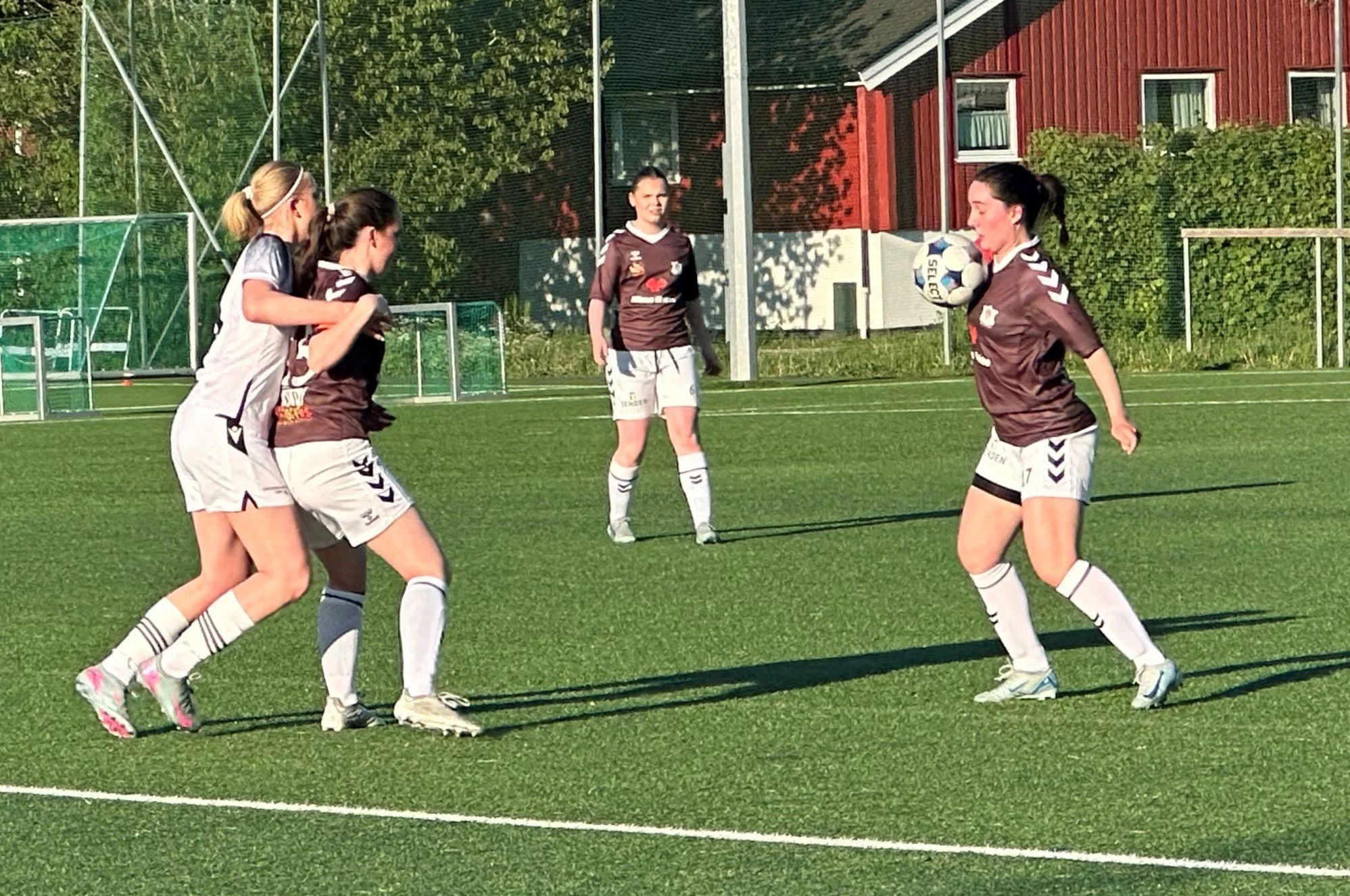 Mia Elizabeth Hannevig, Linea Skulstad-Hansen og Aida Kvrgic i kamp på Haukerødbanen mandag kveld