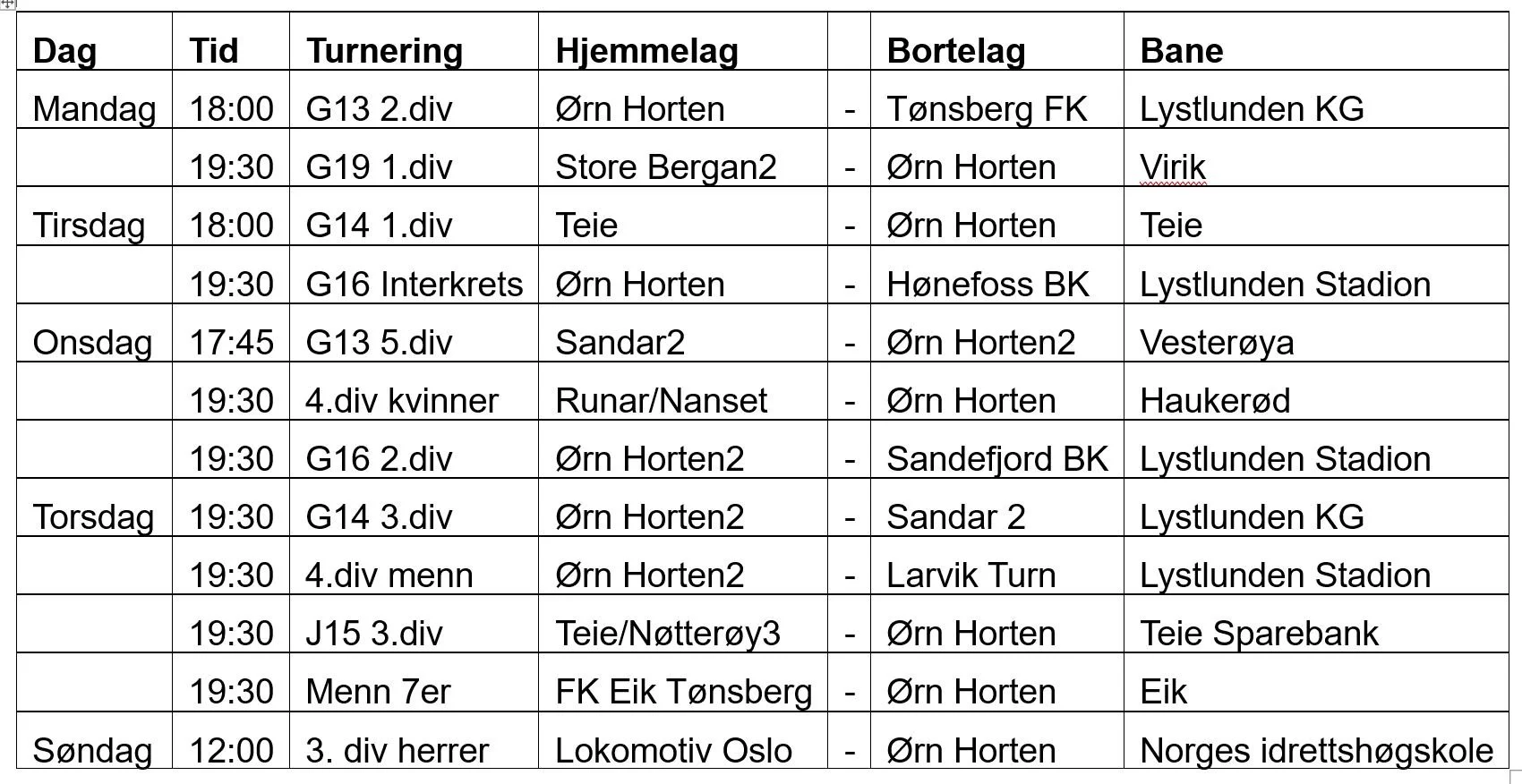 Uka fra mandag 20. til søndag 26. oktober er den siste uka mange Ørnspillere spiller seriekamper.