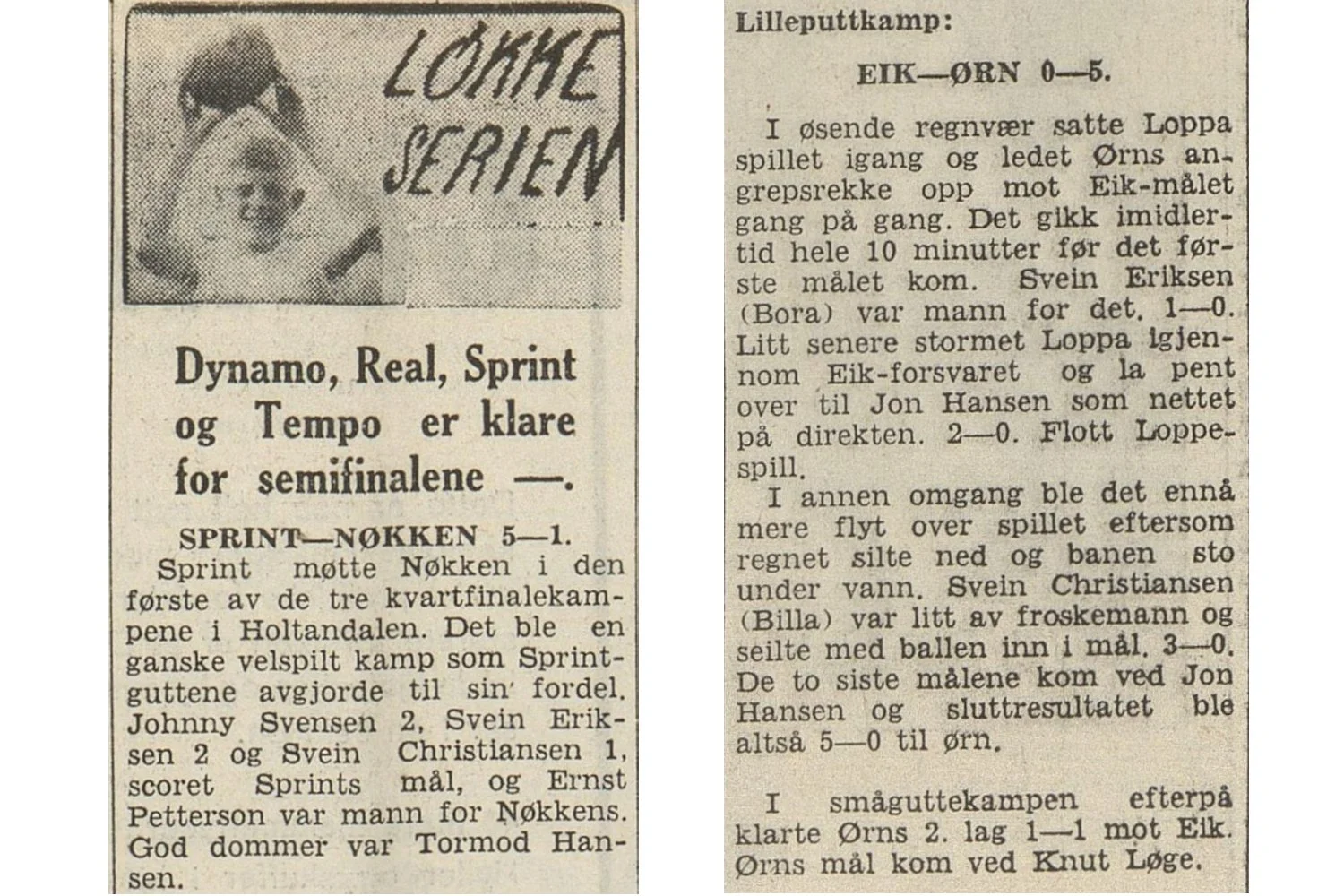 To referater fra Gjengangeren, fra Løkkeserien i 1962 og Lilleputtklassen i 1961. (Loppa var Knut Olaf Nævra)